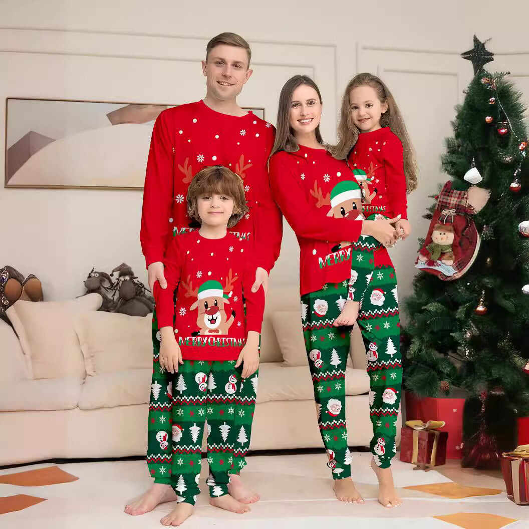 Cartoon Fawn Snowman Christmas Printed Parent-Child Pajama Set