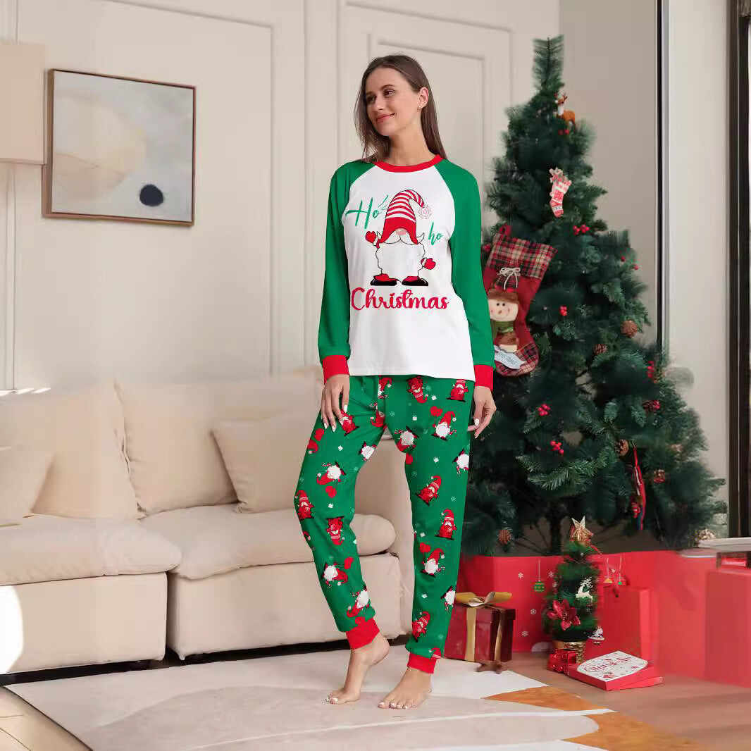 Family Parent-Child Green Printed Santa Pajama Set 642738