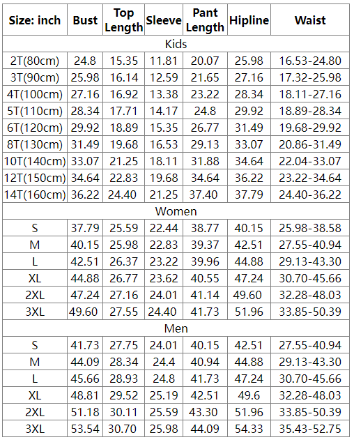 • Size: Dad: S-3XL, Mother: S-3XL, Kids: 2T-14T