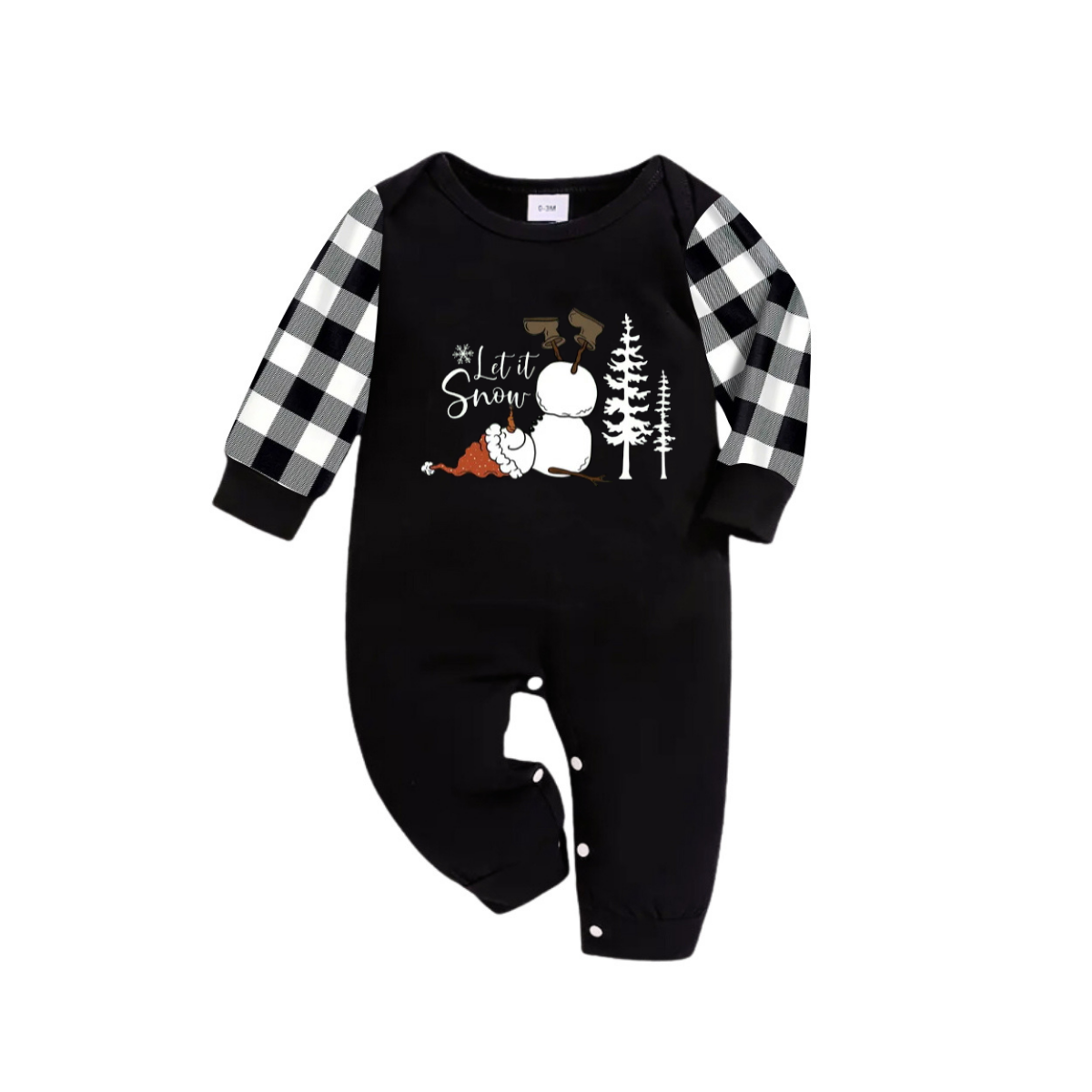 "Let it Snow" Text and Snowman Prints Black and White Plaid Family Matching Pajamas