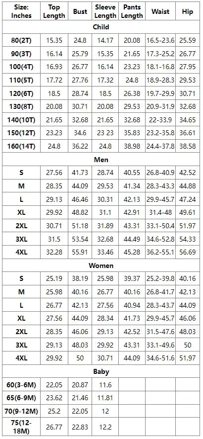 • Size: Dad: S-4XL, Mother: S-4XL, Kids: 60-160