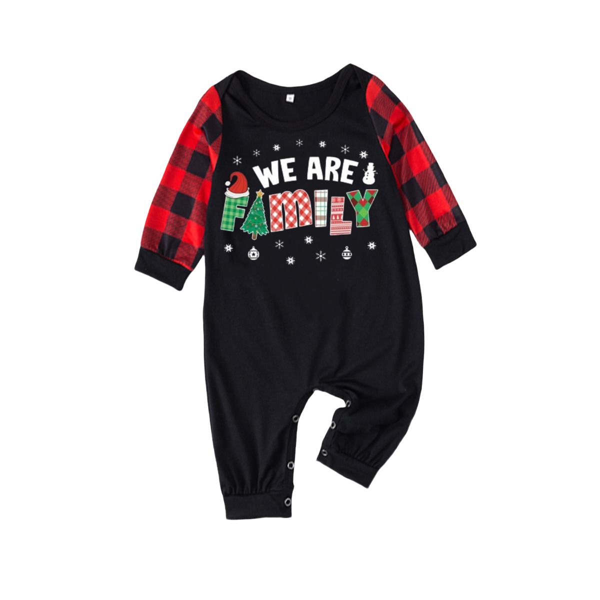 "We are Family" Print Black & Red Plaid Christmas Matching Pajamas
