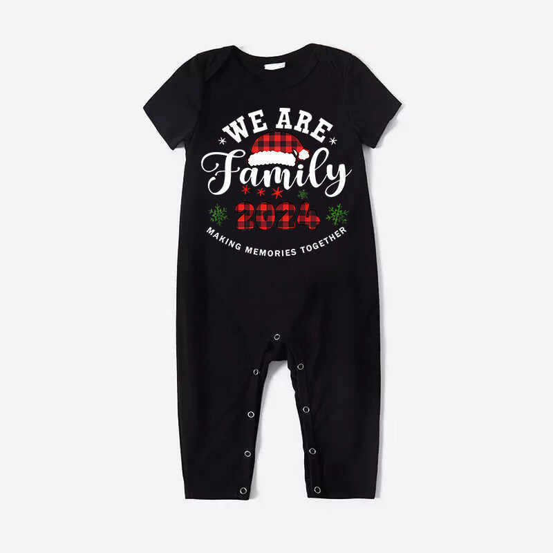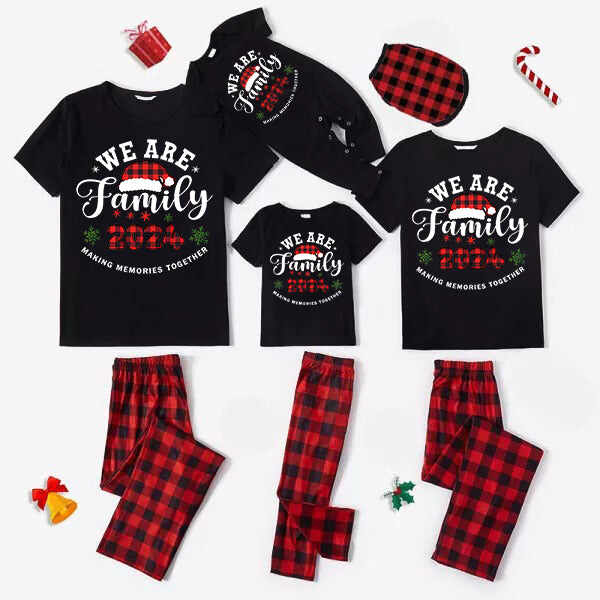 Get ready to cozy up in style with our ""We are Family" Santa Hat Monogram Print Letter Grey Short Sleeve with Red & Black Plaid Pant Family Matching Pajamas". perfect for the festive season. This adorable ensemble is designed for the whole family. including your beloved furry friend.